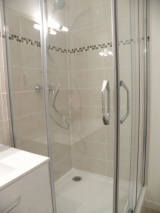 Une entrée avec placard, une pièce de vie, une cuisine aménagée et équipée, une salle de douches avec WC.