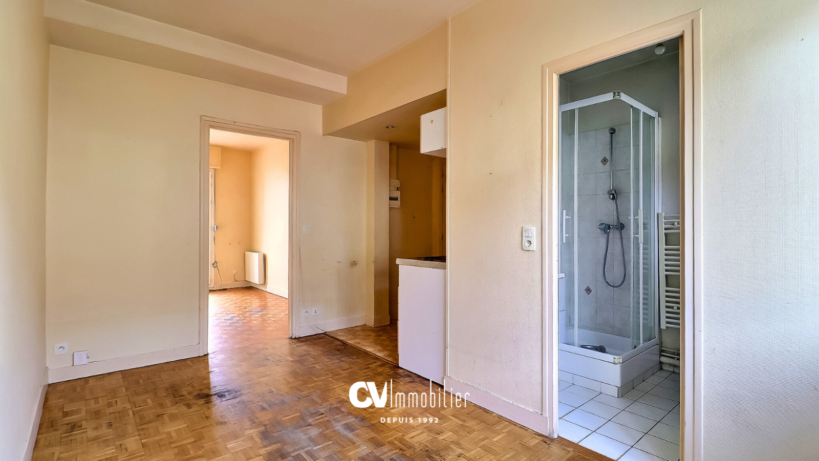 L'agence CV IMMOBILIER vous propose en EXCLUSIVITÉ cet appartement F2 à rénover de 26.26 m² habitables situé au 1er étage d’une copropriété au cœur de Louviers.